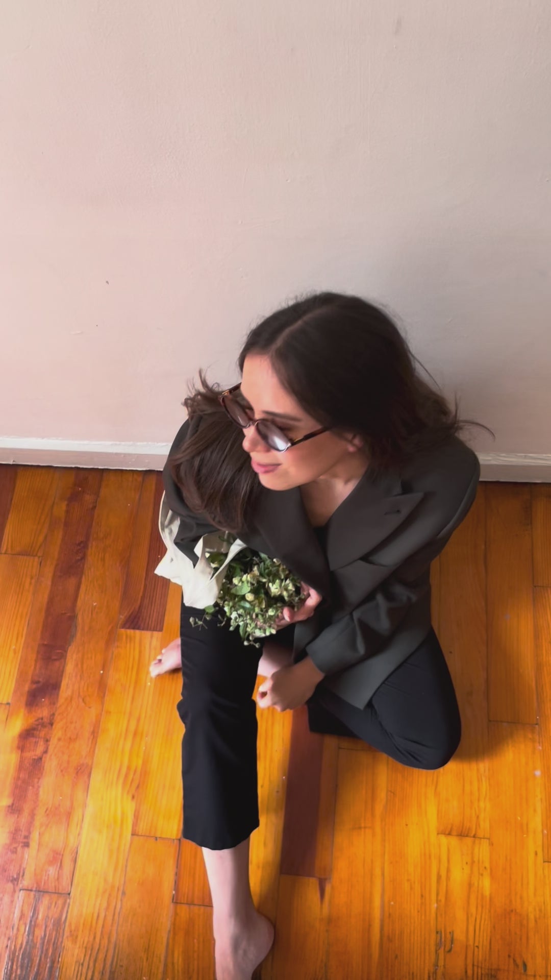 Tailored single-breasted oversized blazer with elongated silhouette, flap front and inside pockets, center back vent. Peak lapel. Three outside functional pockets.